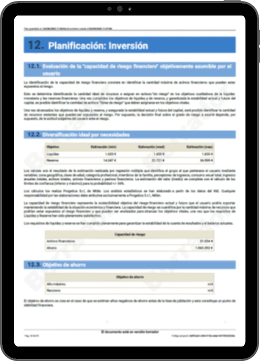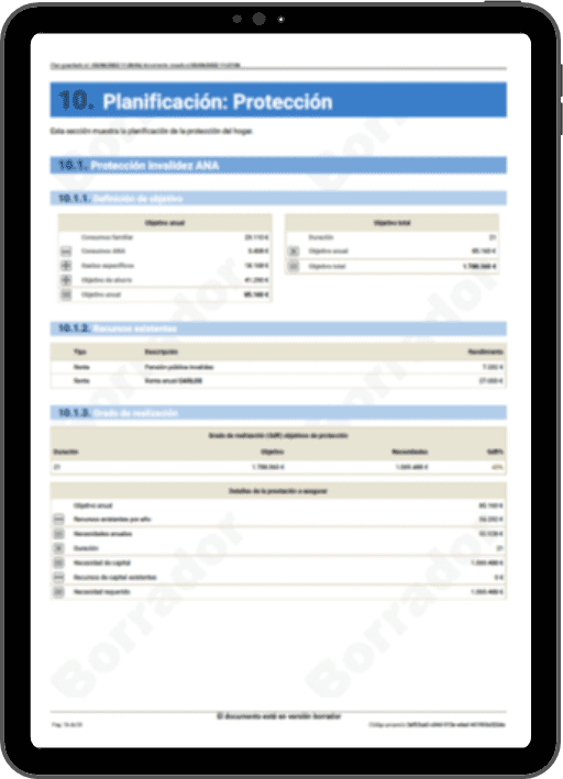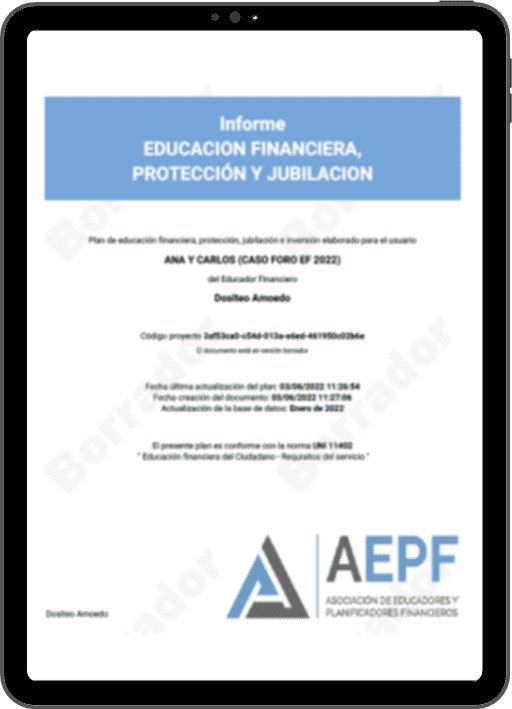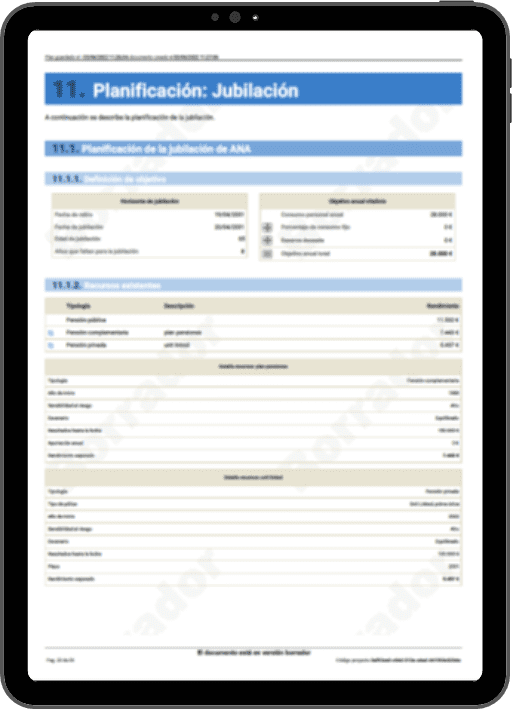 Todas estas recomendaciones se recogen en un Informe del Plan Financiero Personal, un documento fundamental que ofrece una visión completa y personalizada del camino a seguir. Antes de su entrega, el informe se revisa a fondo y se valida con el cliente para asegurar su precisión y claridad.