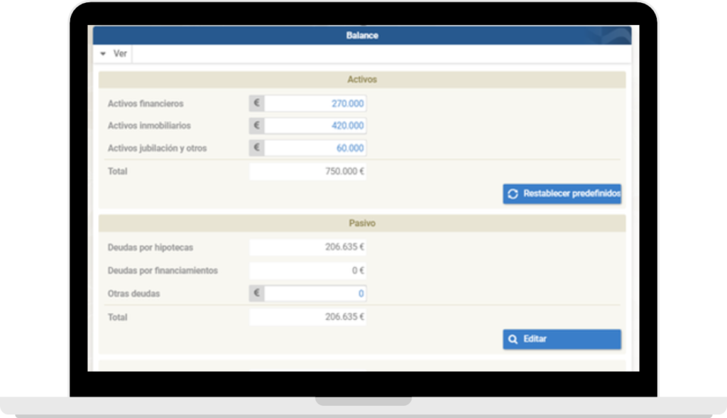 El planificador deberá realizar y proporcionar al cliente, de manera clara y razonable, una evaluación del estado del cliente desde un punto de vista financiero y económico. Esta evaluación se realizará utilizando como herramientas el balance y la cuenta de resultados previsional.